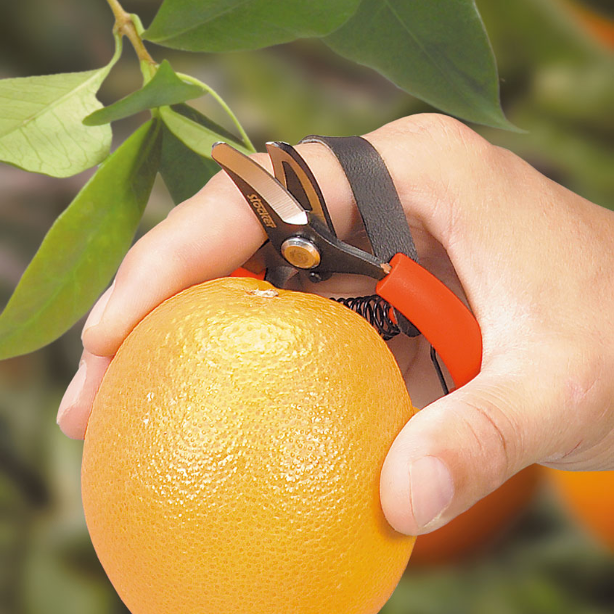 La forbice Stocker per agrumi è lo strumento ideale per la raccolta professionale di frutti come arance, limoni, mandarini, ma anche uva o piccoli frutti. Le sue dimensioni compatte (10 cm) e il peso ultra contenuto (solo 38 grammi) la rendono perfetta per lavori prolungati senza affaticare la mano.