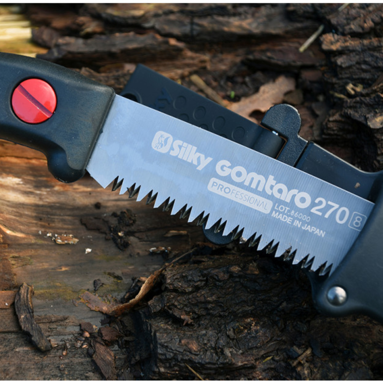 Una lama diritta è più facile da usare in spazi ristretti vicini al terreno. La Gomtaro è consigliata tra gli esperti potatori quando si rimuove la cima di un albero. Per eseguire un taglio di abbattimento, la lama diritta vi aiuta a manipolare il perno del legno mantenendo un taglio a schiena diritta. Se usate Silky per la prima volta, allora state attenti a questa sega affilatissima come un rasoio!